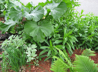In the front yard, a border of black raspberries is doing remarkably well. Planted last summer, these are now forming flower buds and starting to spread. We can just taste sweet black raspberry jam!