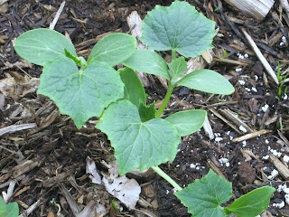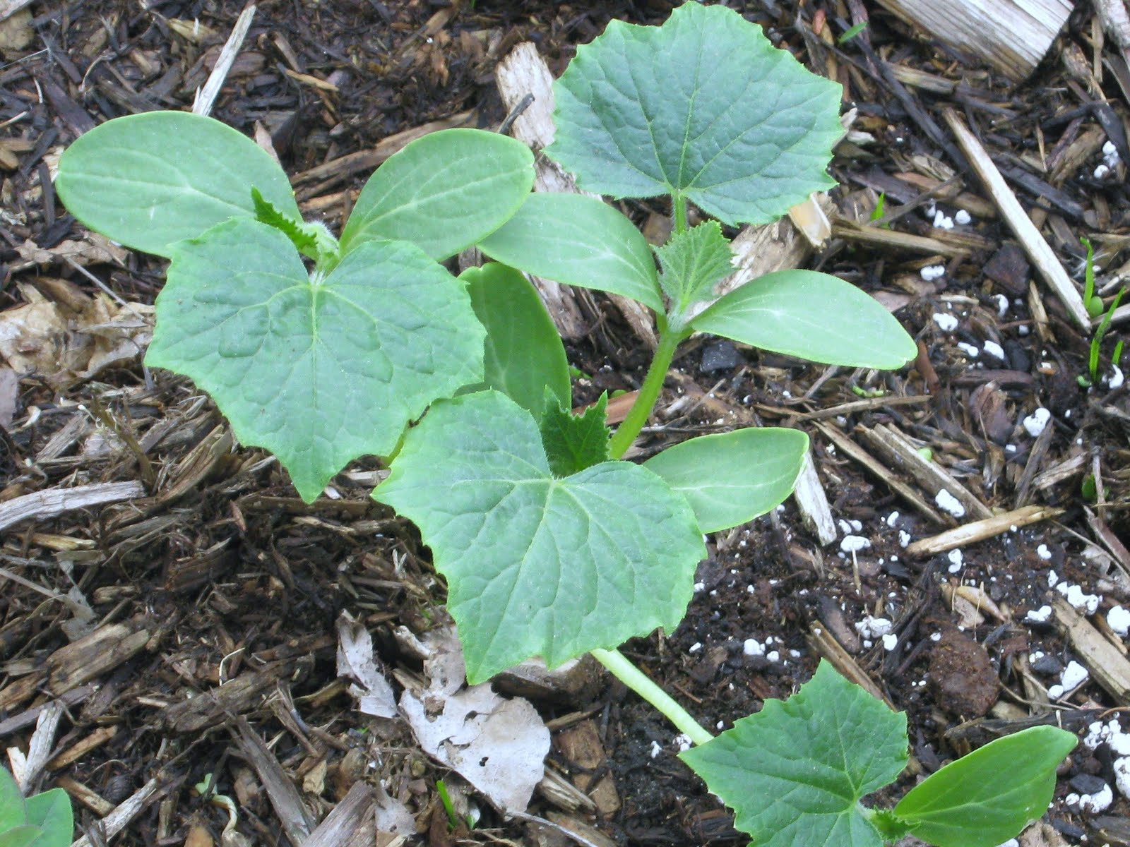 We noticed today a volunteer cucumber plant in the middle of the flower bed. How did it get here?