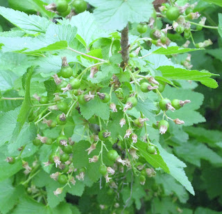 Black currants are starting to form. All three currant bushes look great. We will have an abundance of currants in June/July (black, red, and champagne).
