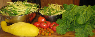 Yellow and green beans, yellow squash, three kinds of tomatoes, Swiss chard.