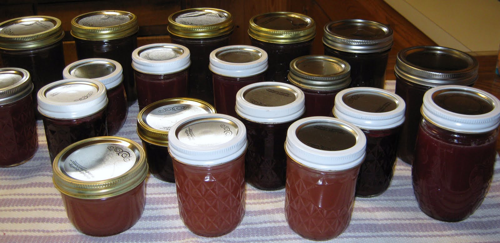 One day spent canning resulted in six pints of grape jelly, three half-pints champagne currant jelly, six half-pints red currant jelly, and four half-pints black currant jelly. The pears went into eight pints of pear-pineapple preserves, a packed one-gallon bag dehydrated pear slices, and a few quarts of pear sauce.