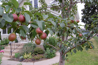 We have high hopes this summer and fall for big harvests of pears. The fruit is thick on this tree, and the other is equally full.